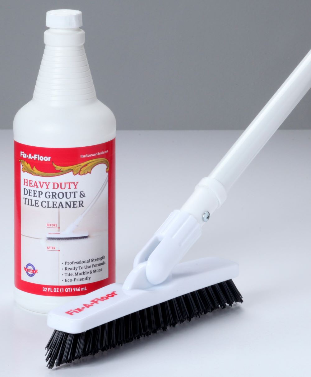 Introducing The Fix-A-Floor Heavy Duty Deep Grout & Tile Cleaner All in One! Professional Strength, Ready to Use Formula Makes Cleaning a Breeze! No Mixing Required, Simply pour directly onto the floor, allow to sit for 2-3 minutes, using the Professional Grout Agitator Brush & Universal Telescopic Pole included for FREE! Your Floors will be sparkly clean! Fast & Easy! Created by Fix-A-Floor The Global Leader in Flooring Restoration.